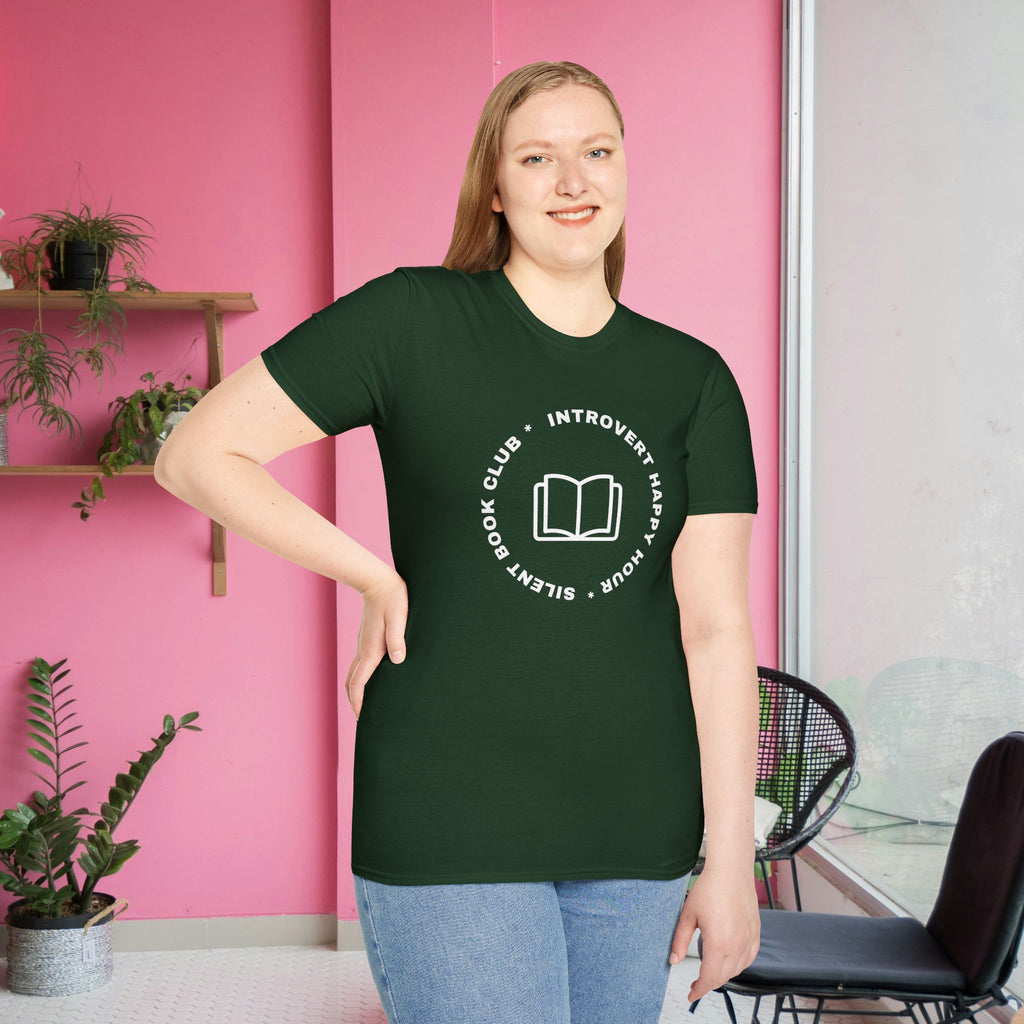 Welcome to introvert happy hour! This unisex soft-style t-shirt puts a new spin on casual comfort. Soft and durable, this tee is made using ethically grown and harvested US cotton.