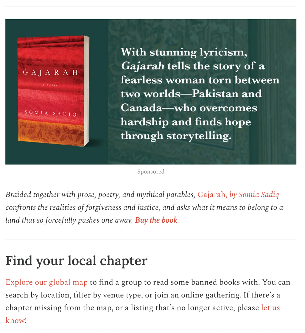 The newsletter includes a banner ad that features an image, blurb, and link.